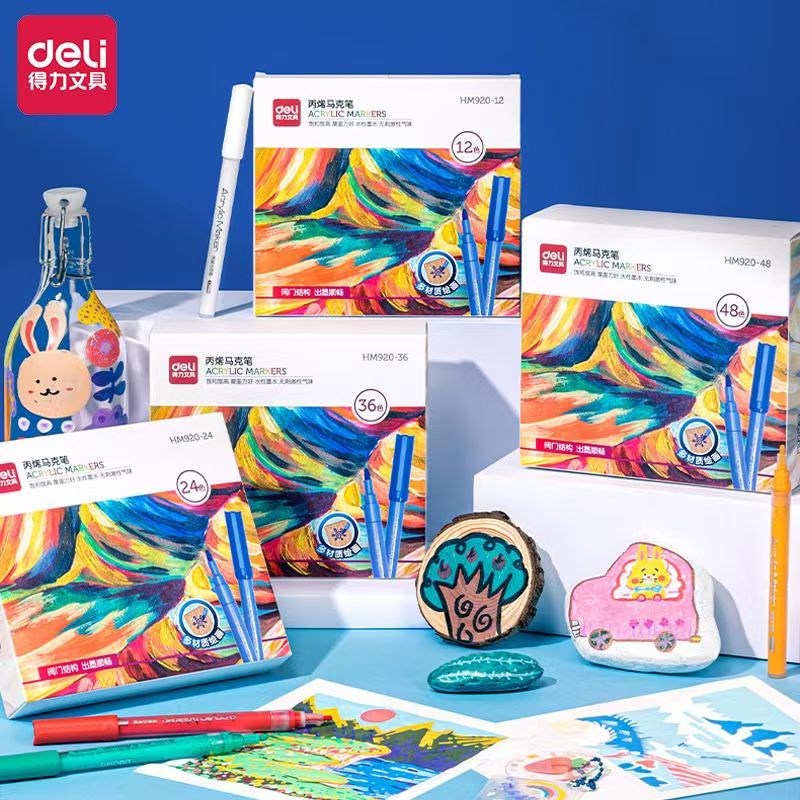 得力HM920系列-彩盒装阀门丙烯马克笔/12色/24色/36色