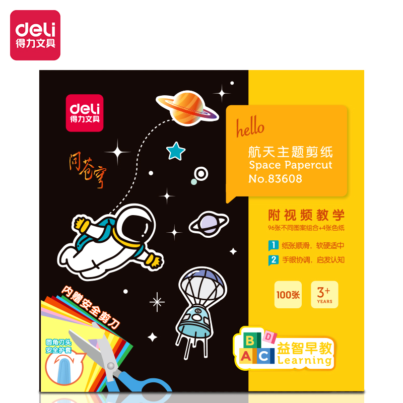 得力83608-140*140mm/100张航天主题剪纸(混)