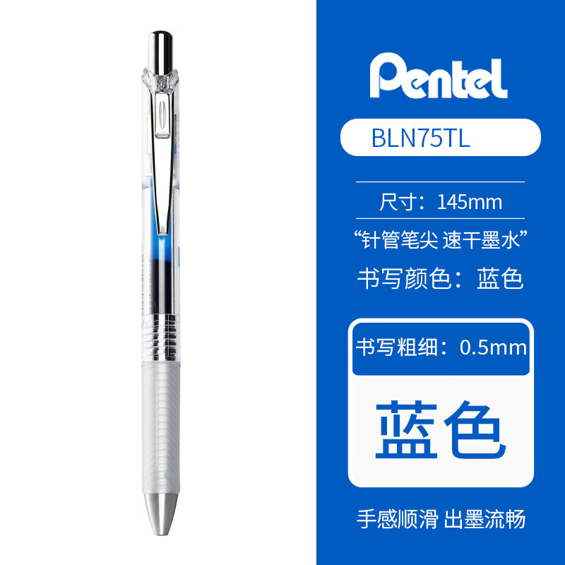 派通BLN75TL-C-0.5mm速干中性笔透明笔杆(蓝色)(10支/盒)