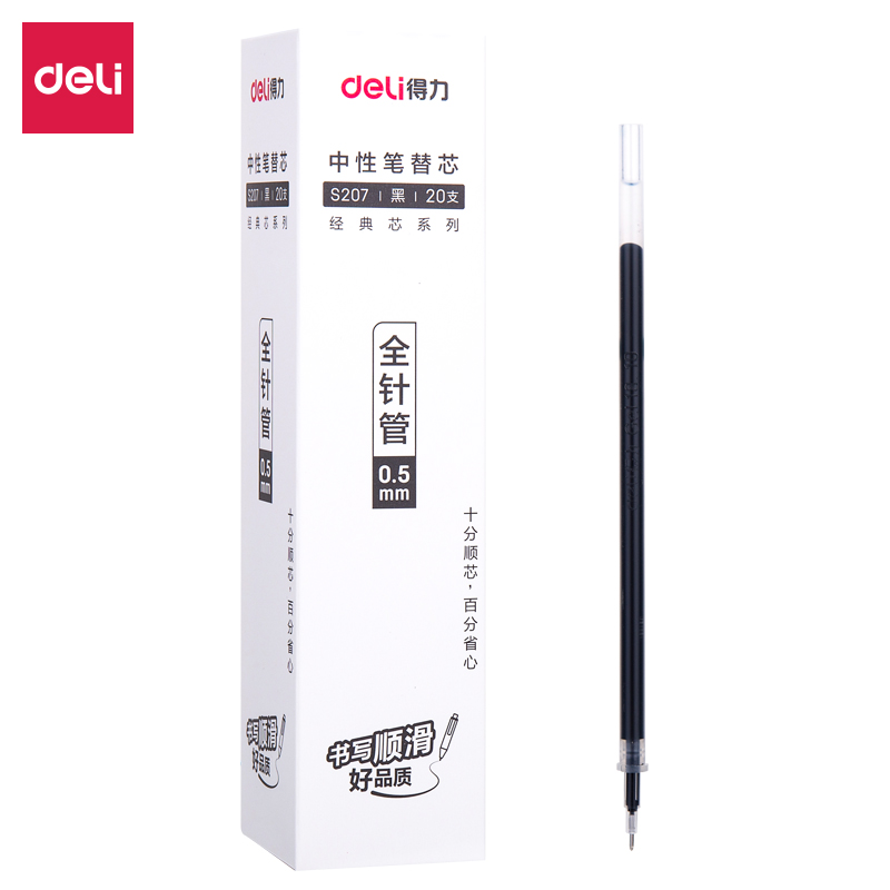 得力S207-0.5mm全针管中性笔替芯(20支/盒)