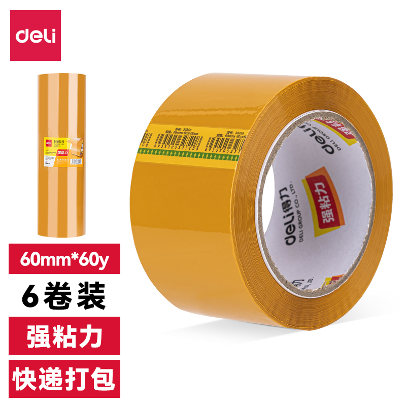 得力JD153-6卷封箱胶带60mm*100y*45μm