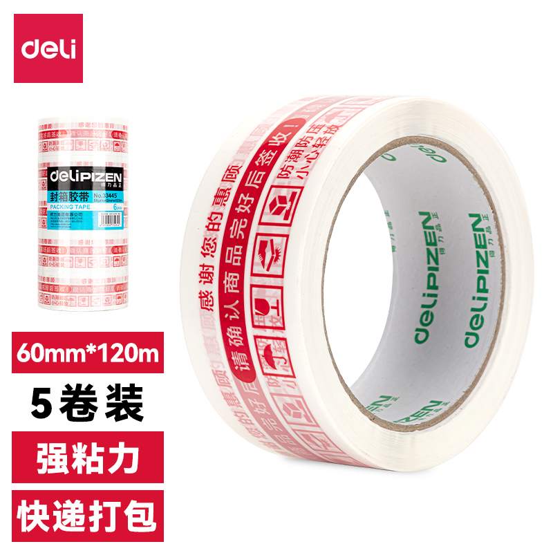 /得力33445-5卷筒装快递胶带42mm*120m*50um(白红)