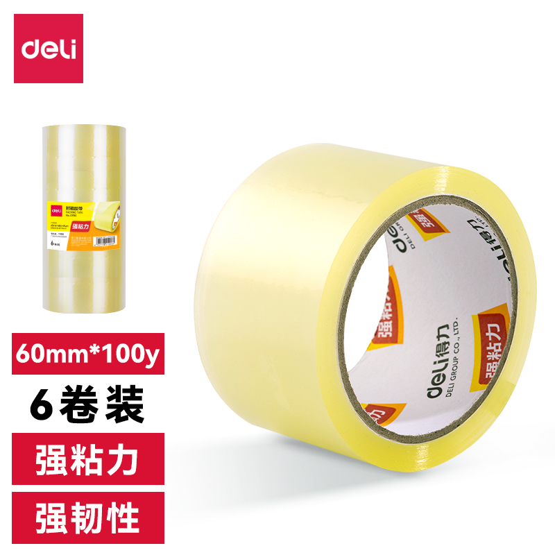 得力品正30932-封箱胶带60mm*100y*45um(普透)(6卷/筒)