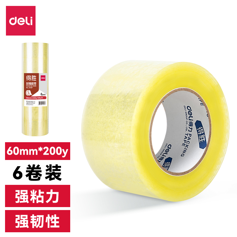 /得力得胜JD567-封箱胶带60mm*200y*50μm(透明黄)(6卷/筒)