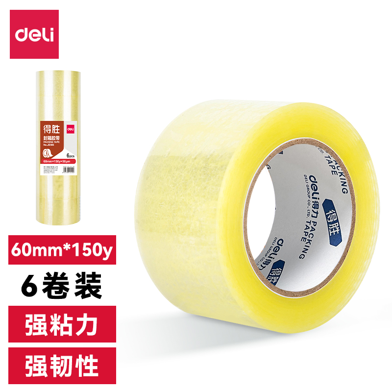 /得力得胜JD560-封箱胶带60mm*150y*45μm(透明黄)(6卷/筒)