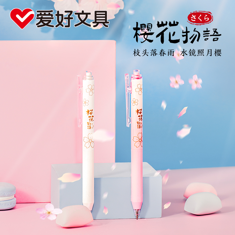爱好GP2213-0.5子弹头樱花按动中性笔(黑)(96支/架)