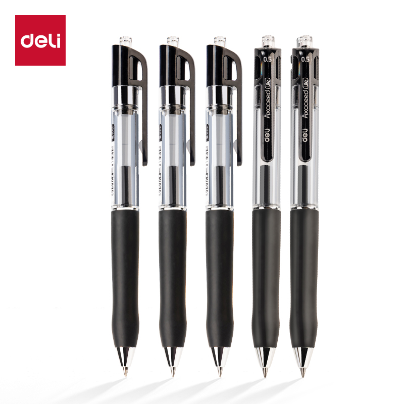 得力S12-0.5mm子弹头臻顺滑按动中性笔(黑)(12支/盒)