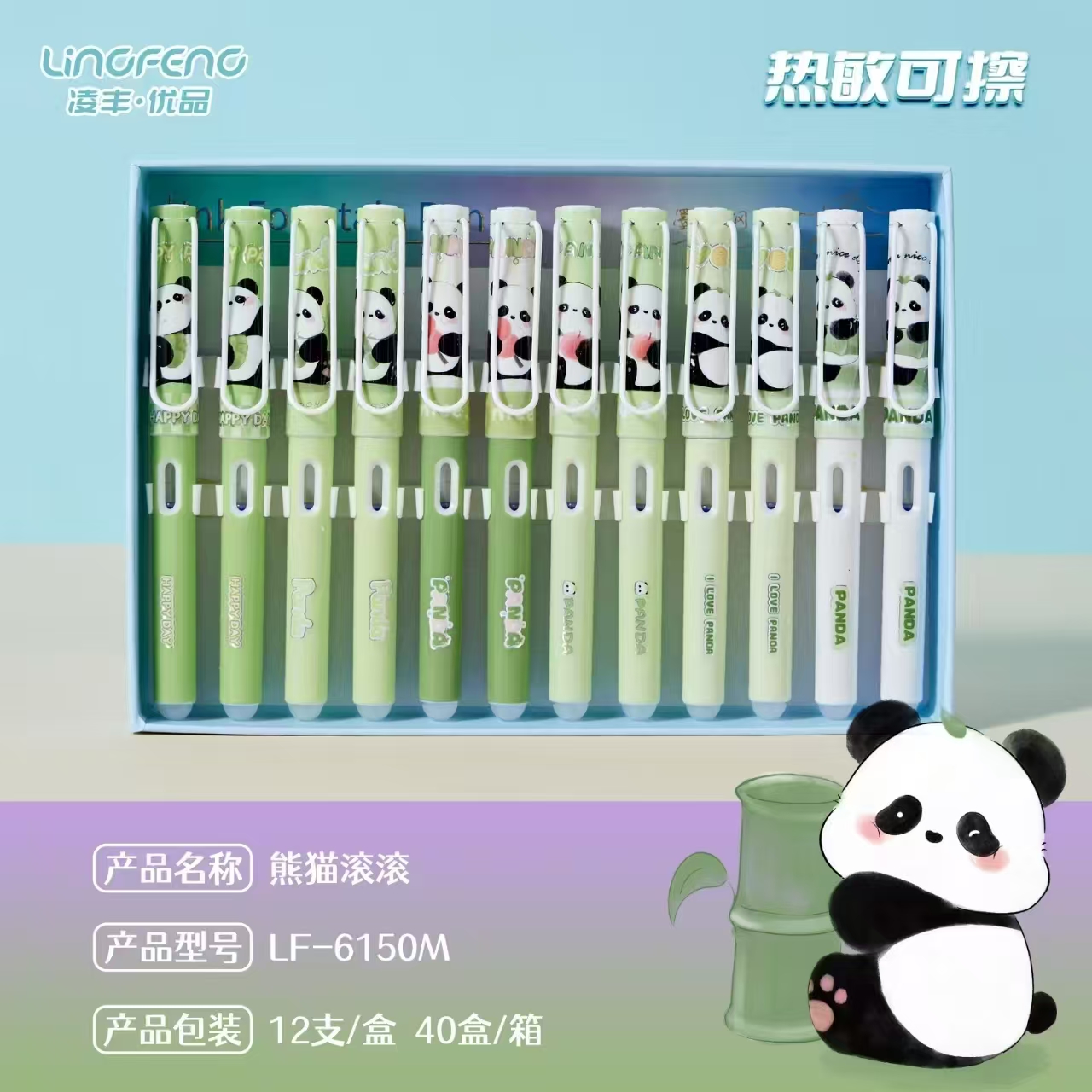 /凌丰LF-6150M-熊猫滚滚热敏可擦钢笔(12支/盒)