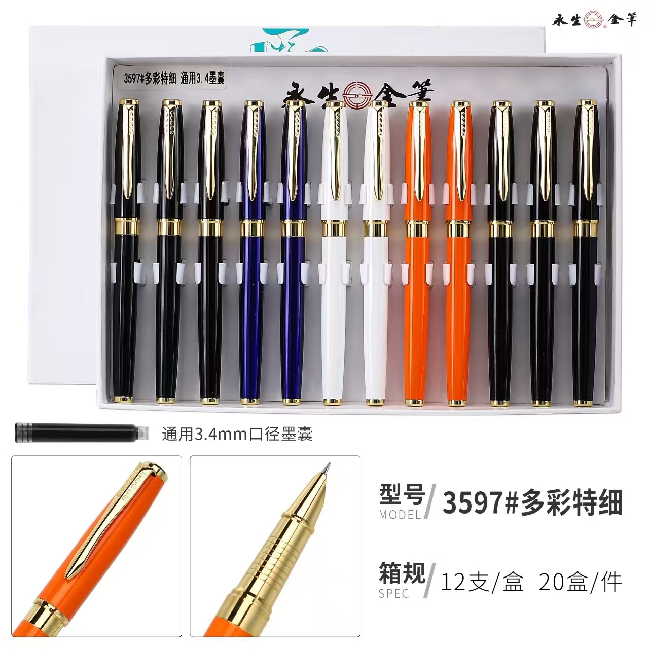 /永生3597-暗尖多彩特细钢笔(混)(12支/盒)