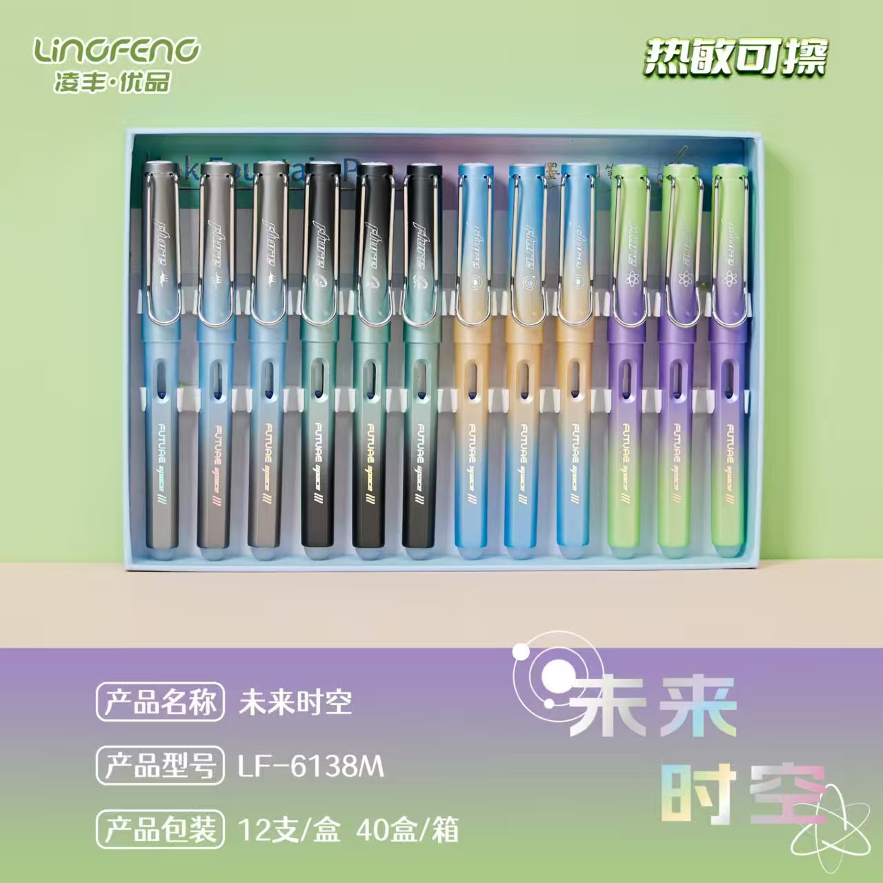 凌丰LF-6138M-未来时空热敏可擦钢笔(12支/盒)