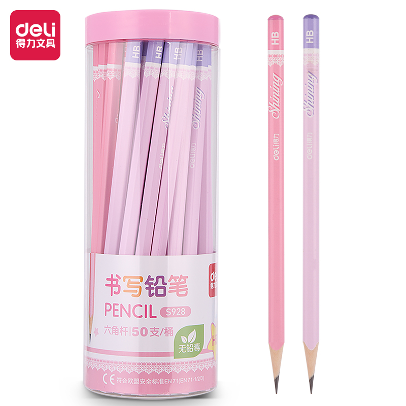 得力S908-HB/50支筒装六角形铅笔(原木色)(8筒/中)