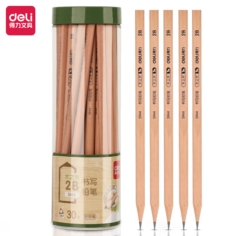 得力S944-2B/30支筒装三角形铅笔(原木色)(12筒/中)