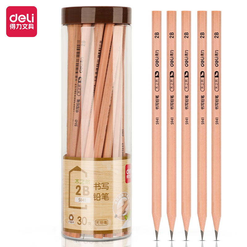 得力S941-2B/30支筒装六角形铅笔(原木色)(12筒/中)