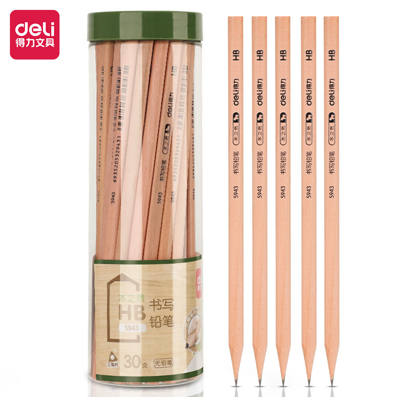 得力S943-HB/30支筒装三角形铅笔(原木色)(12筒/中)