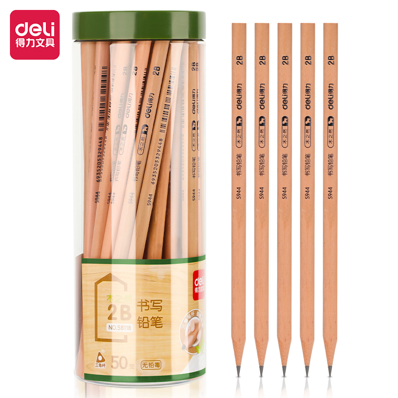 得力58118-2B/50支筒装原木书写铅笔(原木色)(8筒/中)