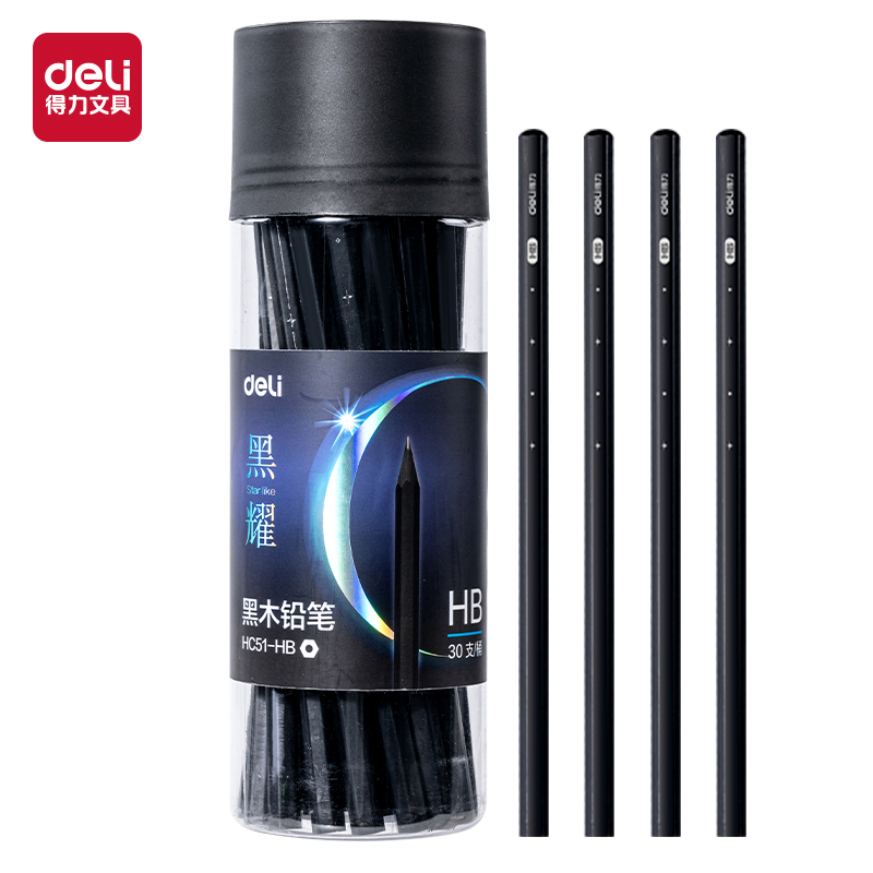 得力HC51-30支黑耀六角杆书写铅笔(黑)(12筒/中)
