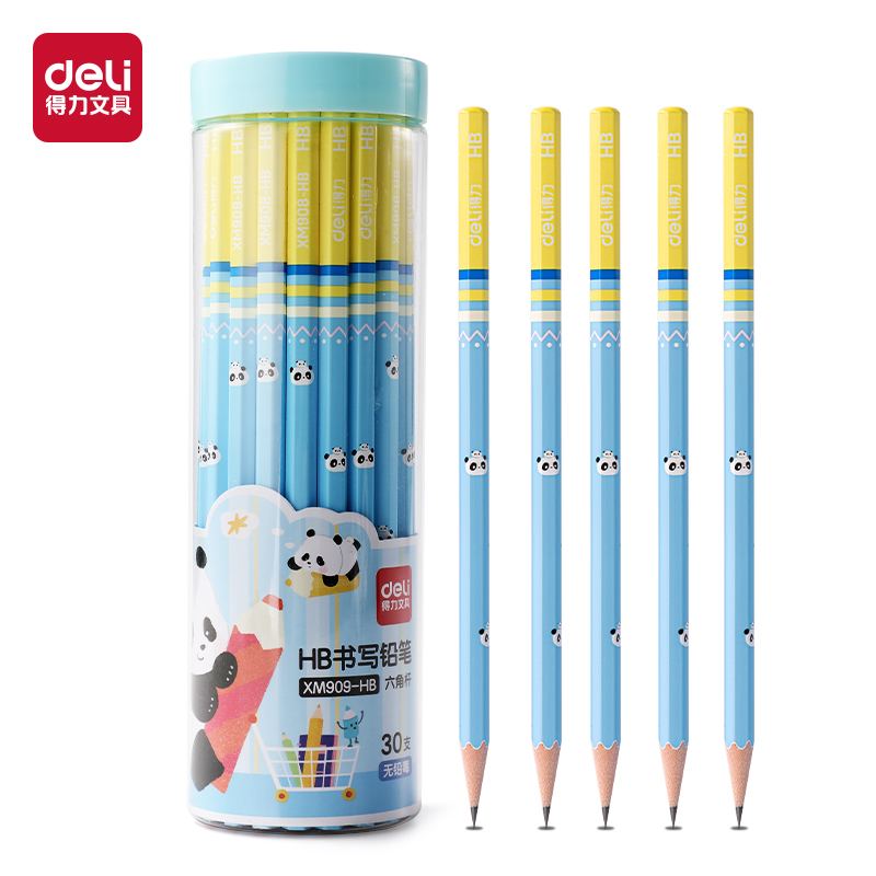 得力XM909-HB/30支熊猫主题六角杆书写铅笔(混)(12筒/中)