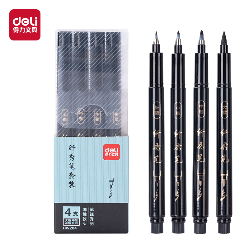 得力HW204-4支装纤秀笔套装(黑)(24盒/中)