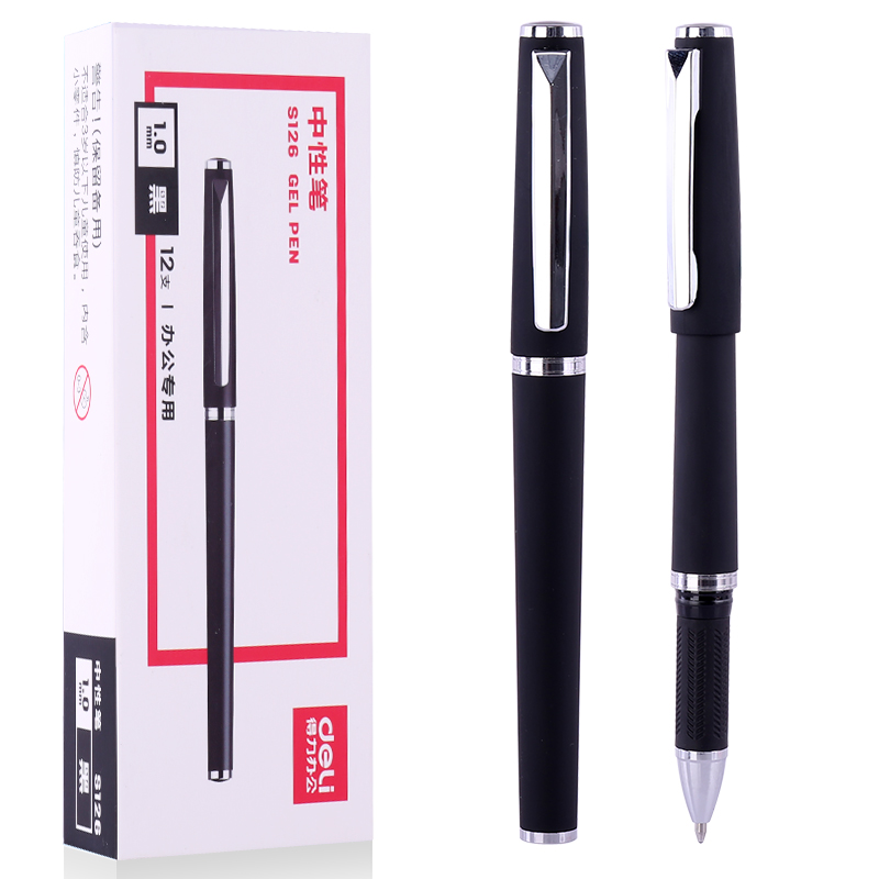 得力S126-1.0mm子弹头办公中性笔(黑)(12支/盒)