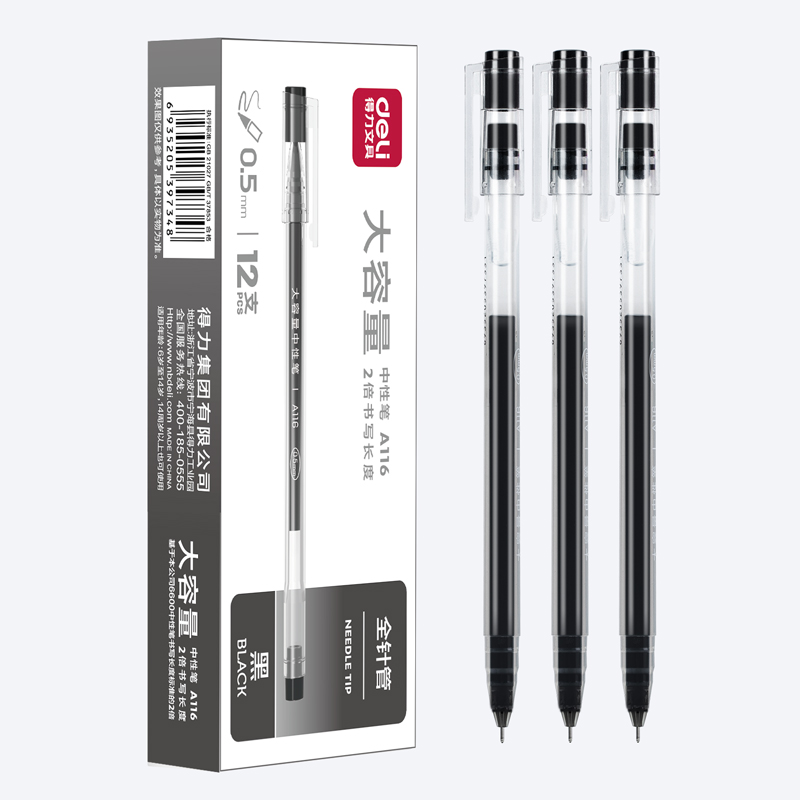 得力A116-0.5mm全针管钻石头大容量中性笔