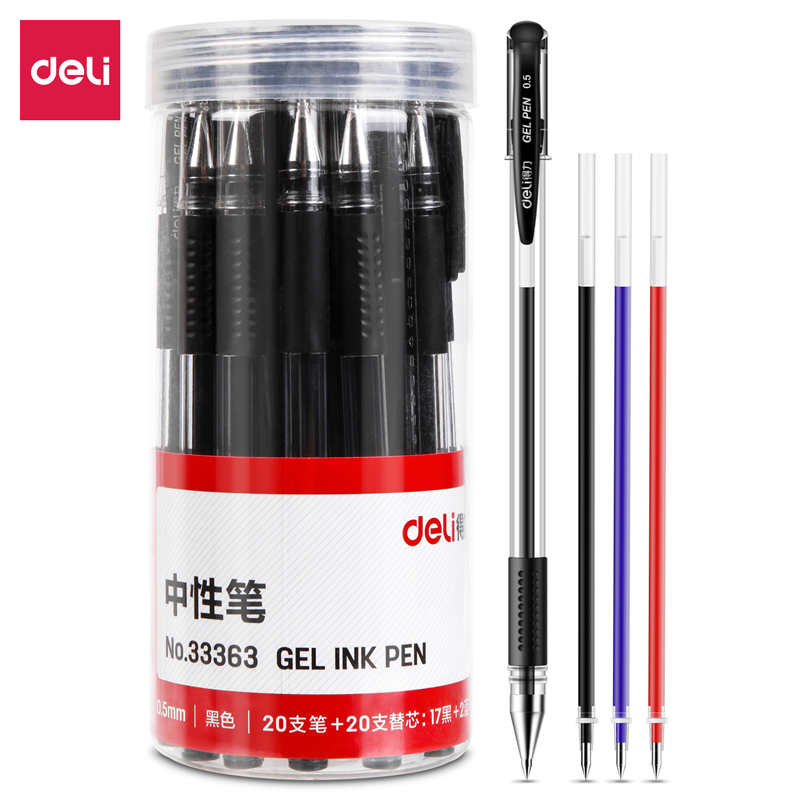 得力33363-0.5mm/20支笔+20支芯/桶装中性笔(12桶/中)