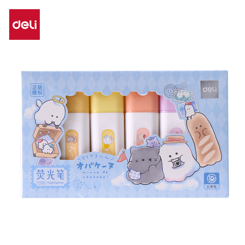 得力SK350-4支三顾喵庐抗晕染荧光笔(混)(24盒/中)