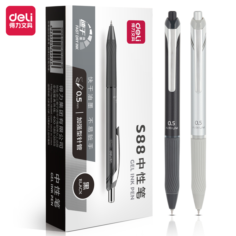 得力S88-0.5mm加强型针管速干办公按动中性笔(12支/盒)