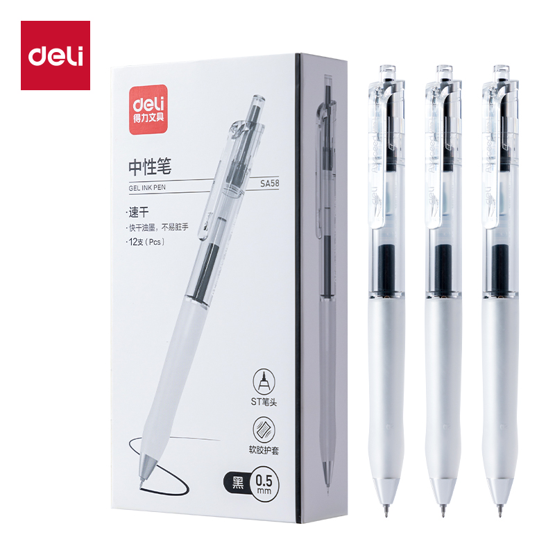 得力SA58-0.5mmST笔头速干按动中性笔(12支/盒)
