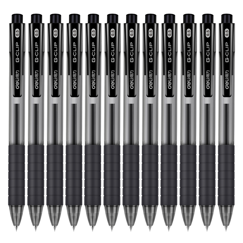 得力S101(新)-0.5mm子弹头臻顺滑办公按动中性笔(12支/盒)