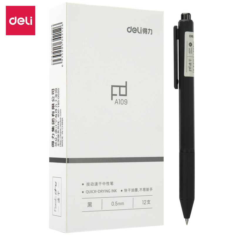 得力A109-0.5mm子弹头速干按动中性笔(12支/盒)