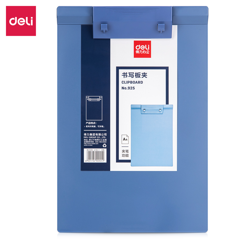 得力9253-A4塑料书写板夹(蓝)/(灰色)(12只/盒)
