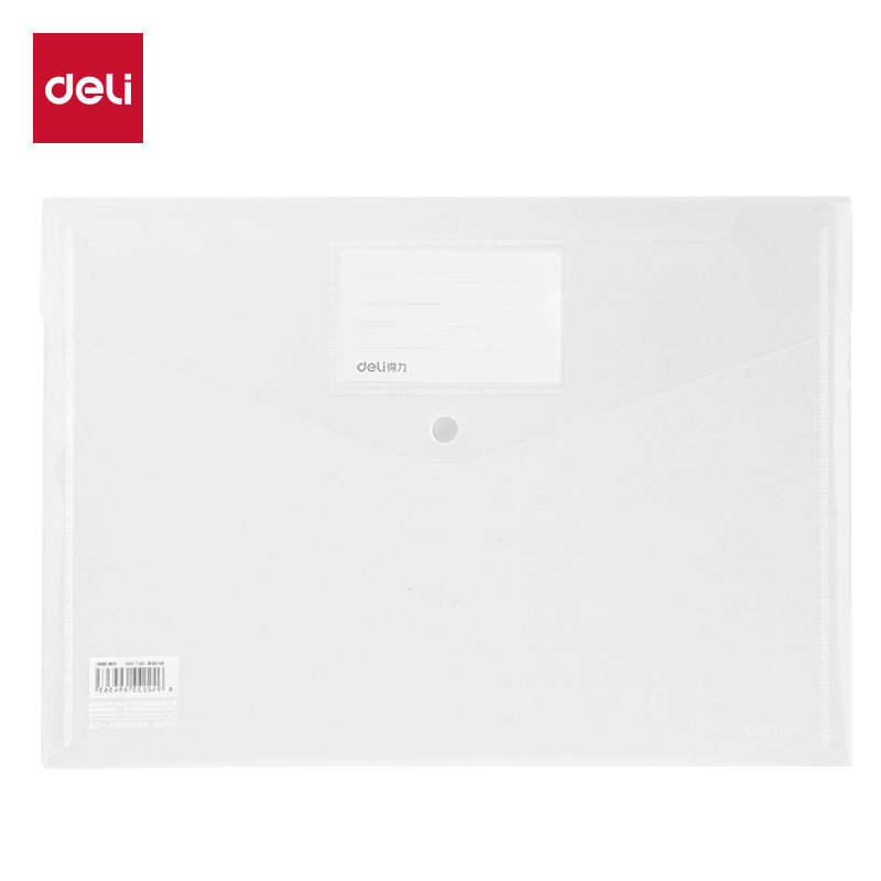 得力8313-A4横条按扣文件袋(透明)(10个/包)