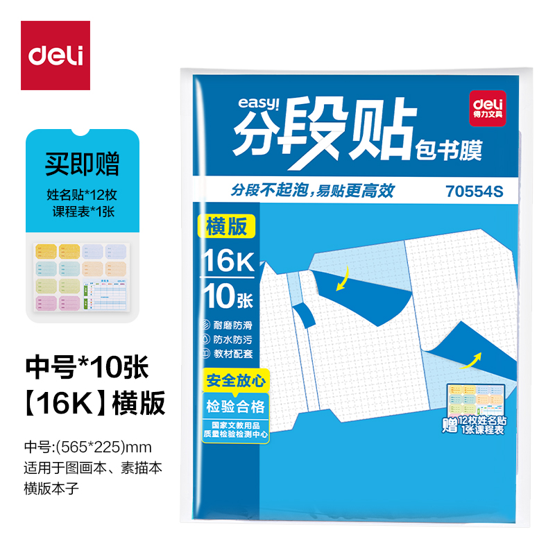 /得力70554S-16K分段贴包书膜横版(混)(50包/中)