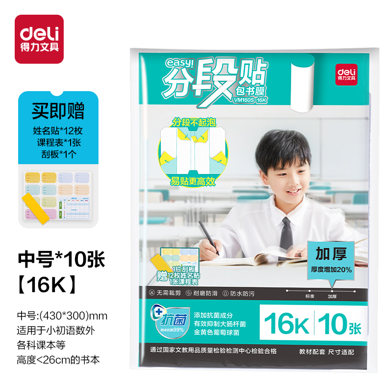 /得力VM160S-16K加厚抗菌分段贴包书膜(混)(50包/中)