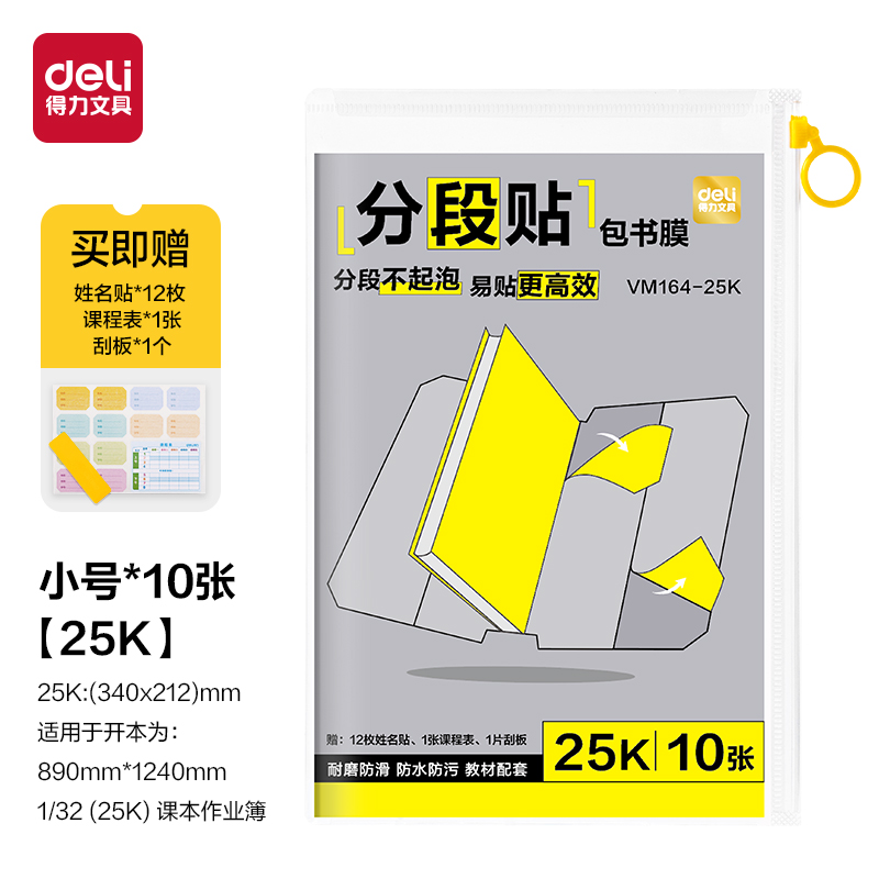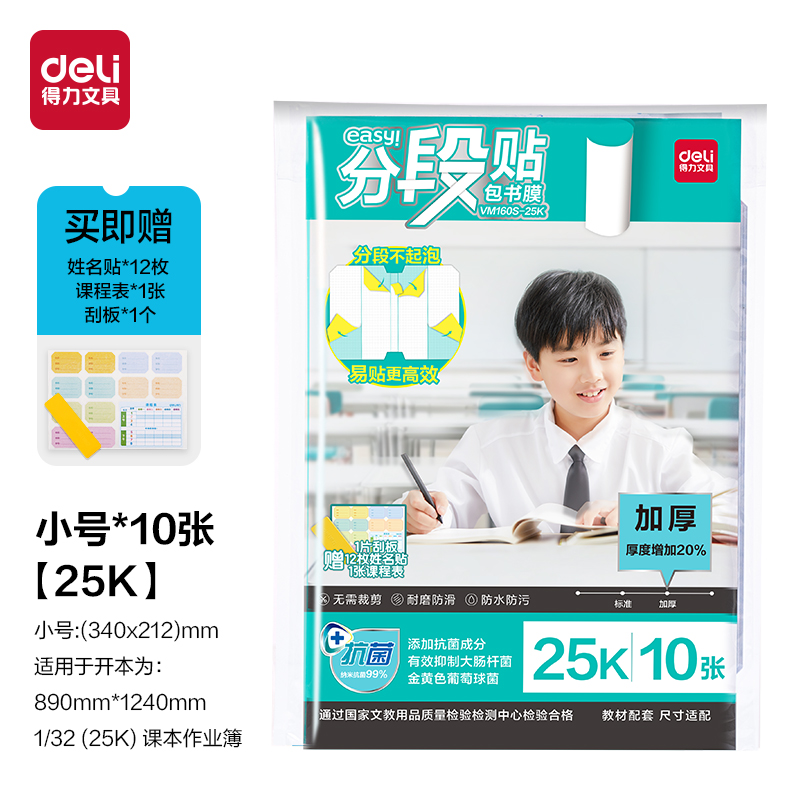 /得力VM159S-2-分段贴包书膜3-6年级小套装(混)(50包/中)