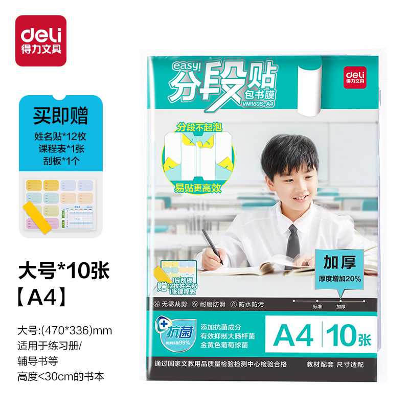 /得力VM160S-A4加厚抗菌分段贴包书膜(混)(50包/中)