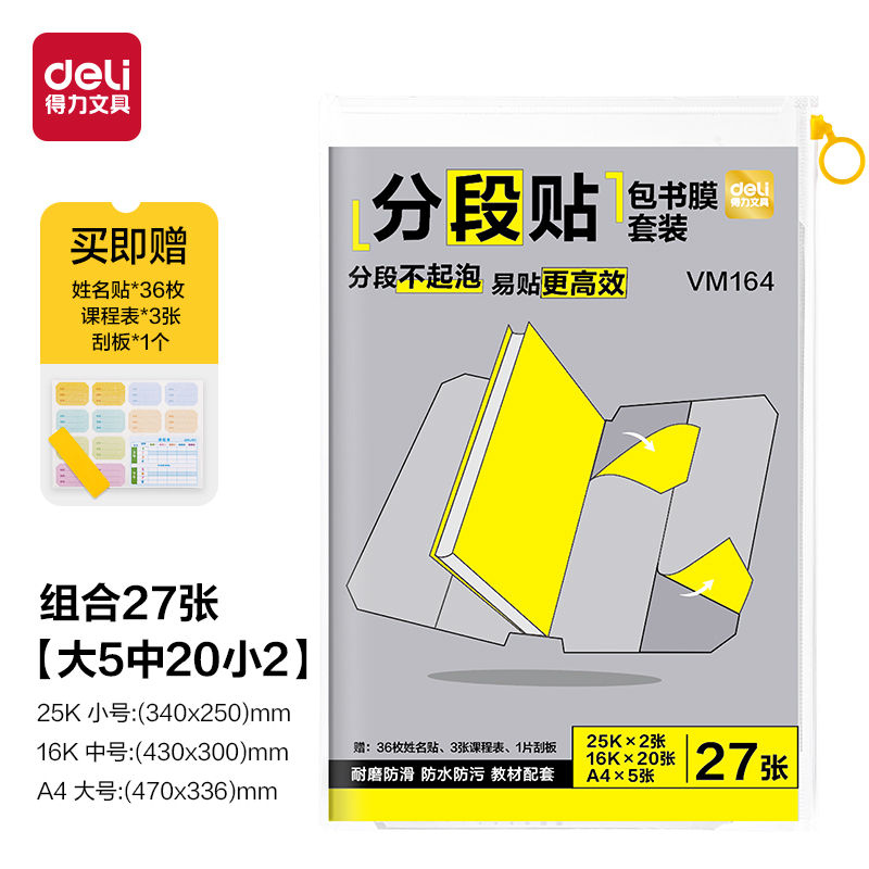 /得力VM164-分段贴包书膜27张套装(混)(15包/中)
