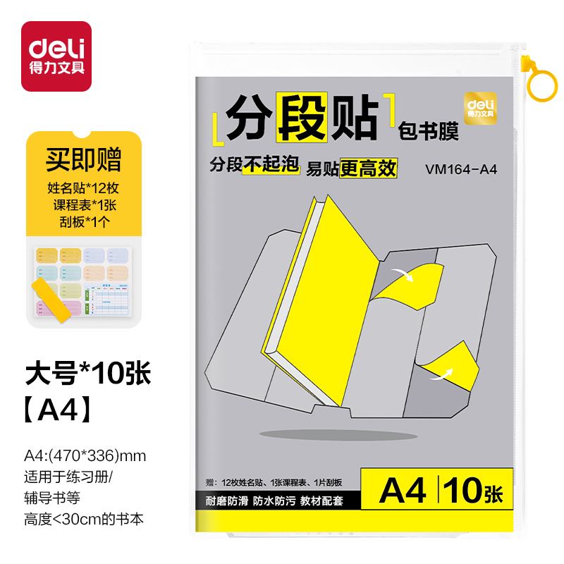 /得力VM164-A4分段贴包书膜(混)(30包/中)