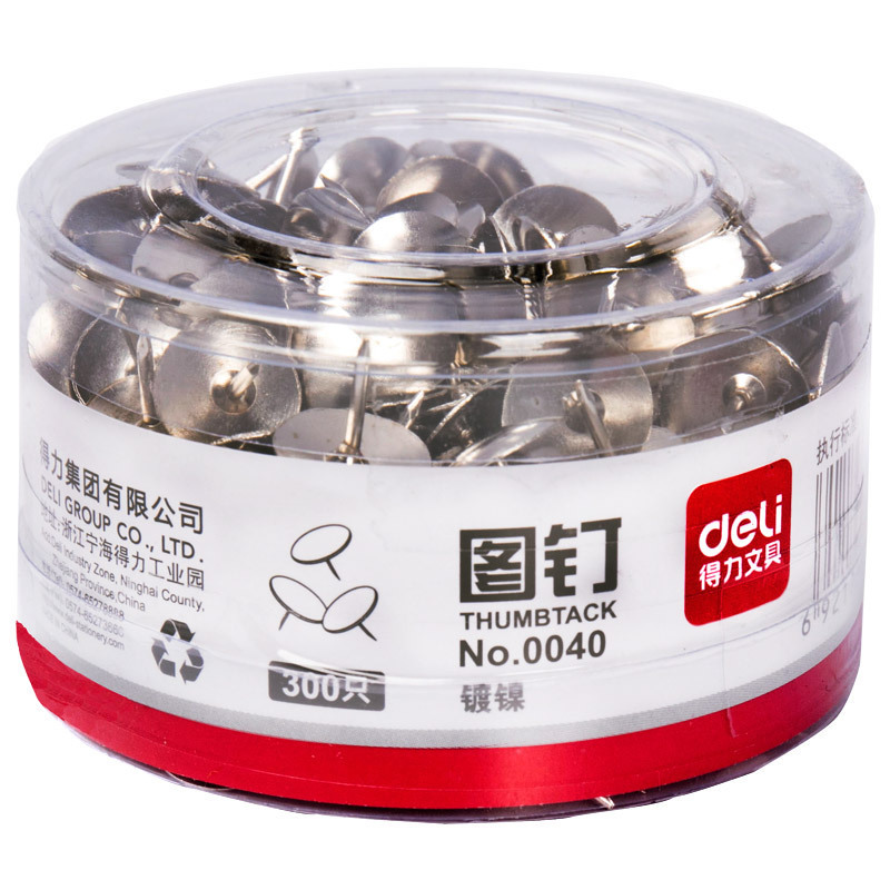 得力0040-300粒筒装镀镍图钉(24筒/盒)