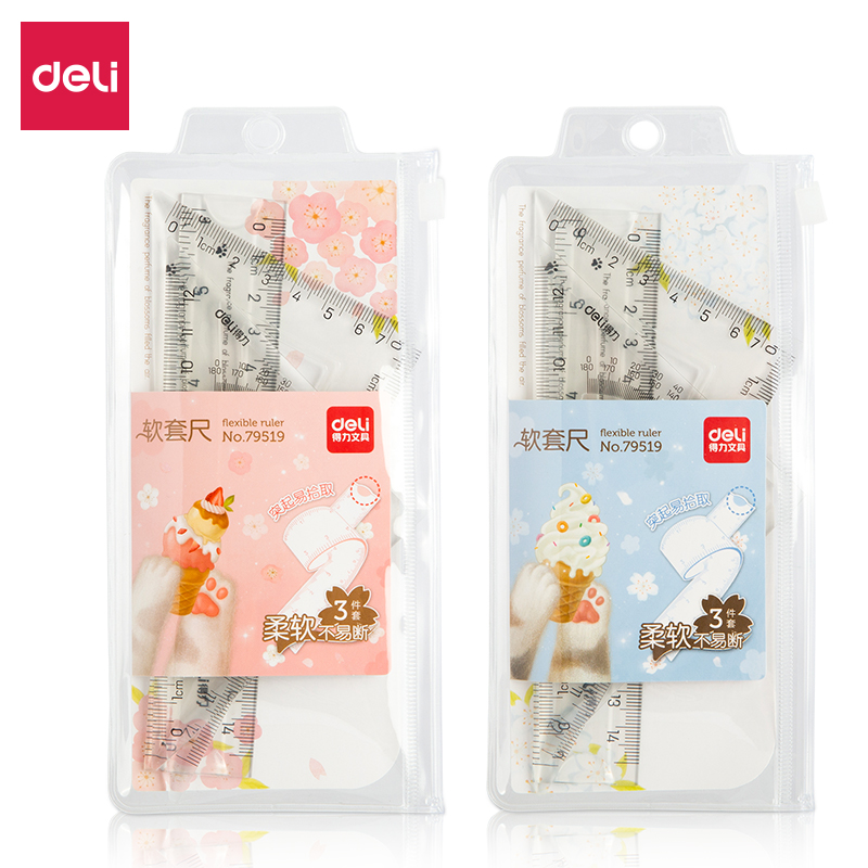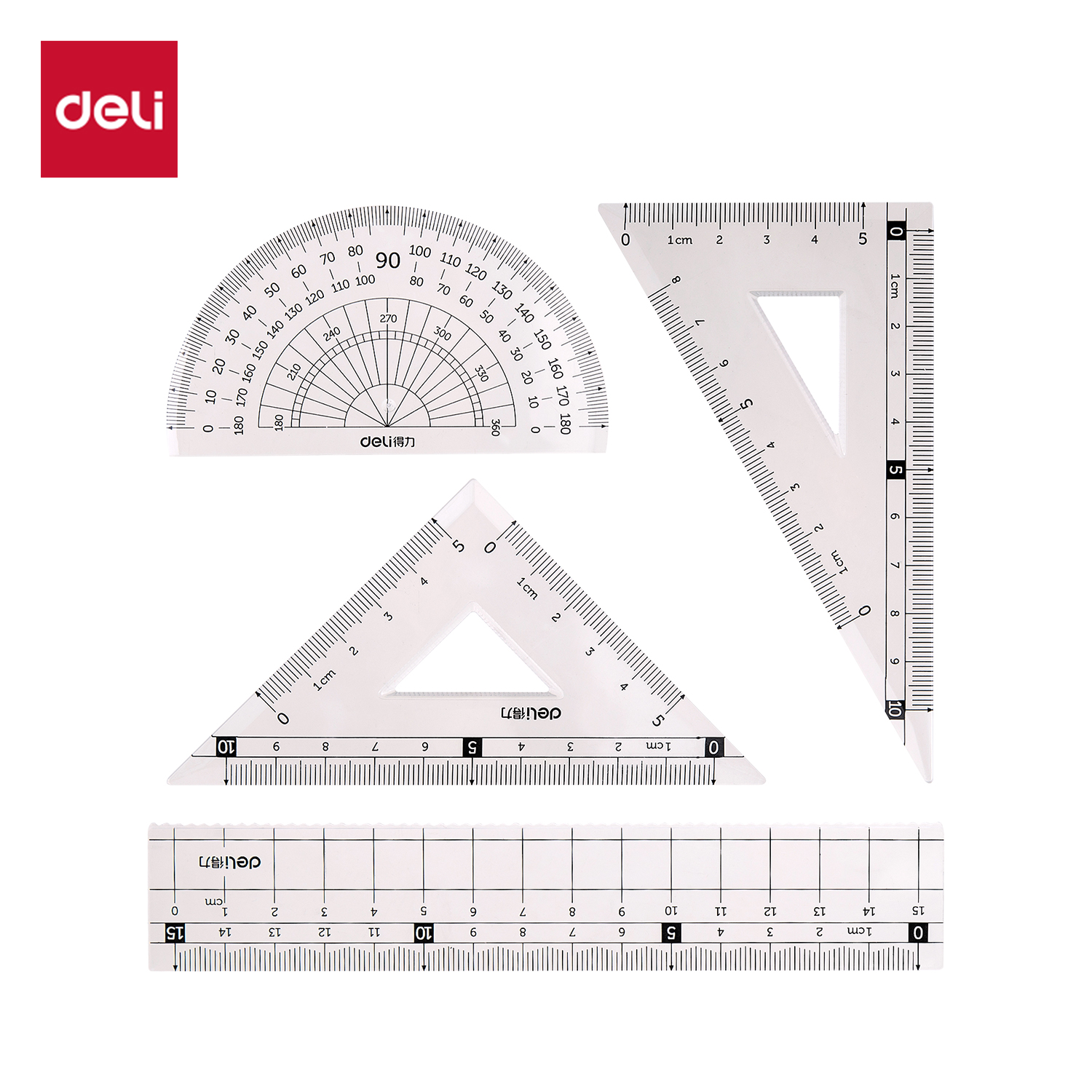 得力79514-15cm高透亚克力学生套尺(24套/盒)