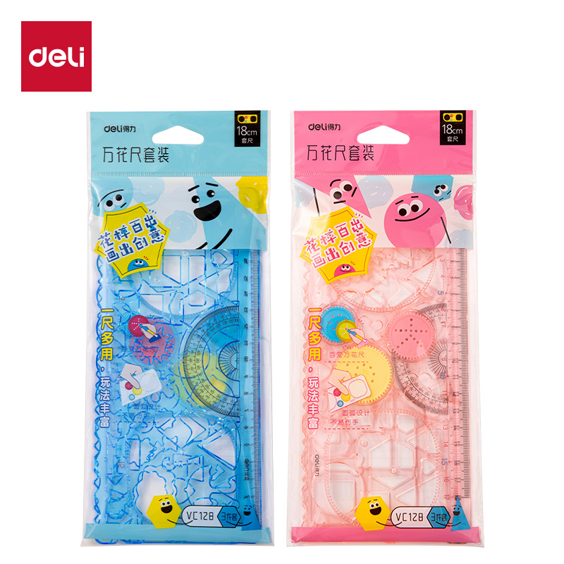 得力VC128-3件套万花尺套装(混色)(24套/中)