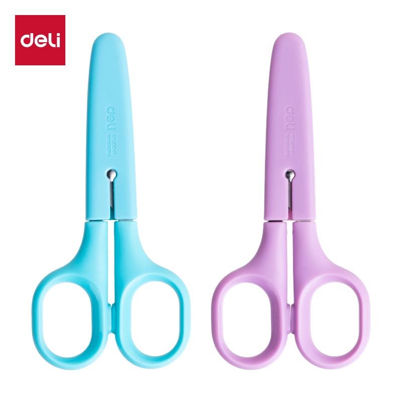 /得力6070-130mm圆角刀头学生护套剪刀(蓝)(12把/盒)