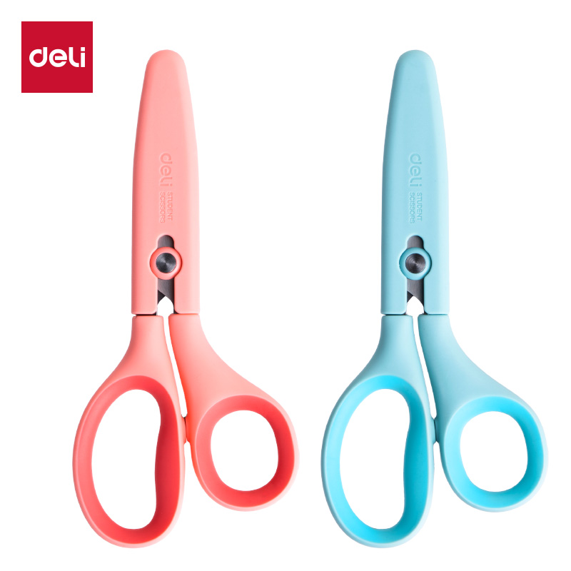 /得力6070-130mm圆角刀头学生护套剪刀(红)(12把/盒)