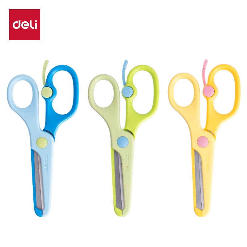 /得力6088-安全护套学生剪刀(混)(12把/中)