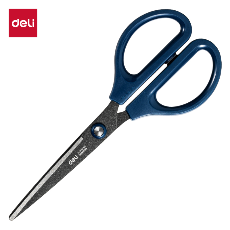 得力0604-F-210mm特氟龙涂层办公剪刀 黑/蓝(12把/中)
