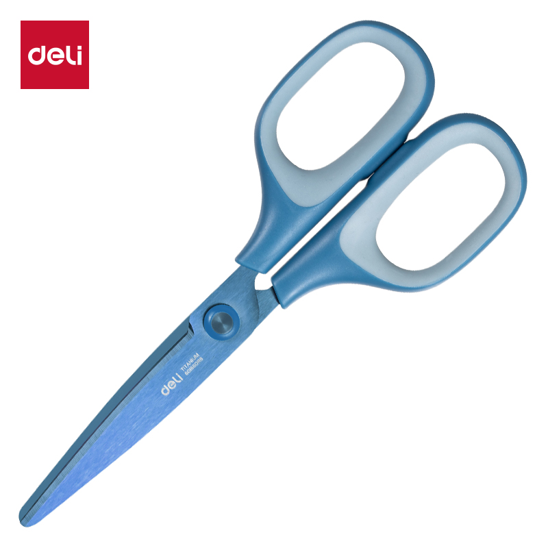 /得力6058-T-175mm镀钛办公剪刀 黑色/蓝色(12把/中)