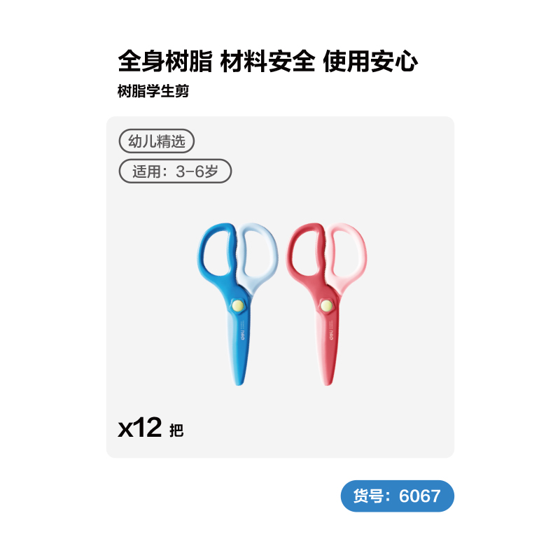 /得力6087-全塑料学生剪刀(混)(12把/中)