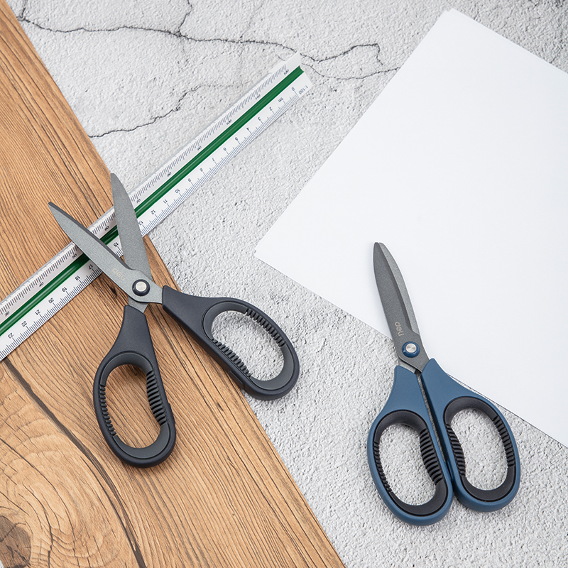 /得力0603-F-170mm特氟龙涂层办公剪刀 黑/蓝(12把/中)