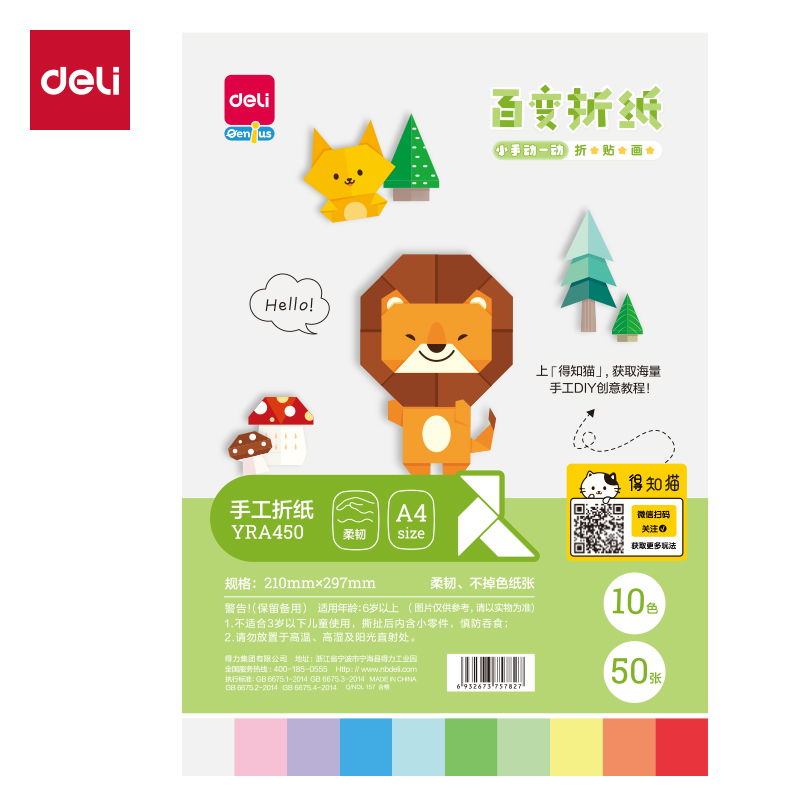 得力YRA450-A4/10色50张手工折纸(混色)(100袋/箱)