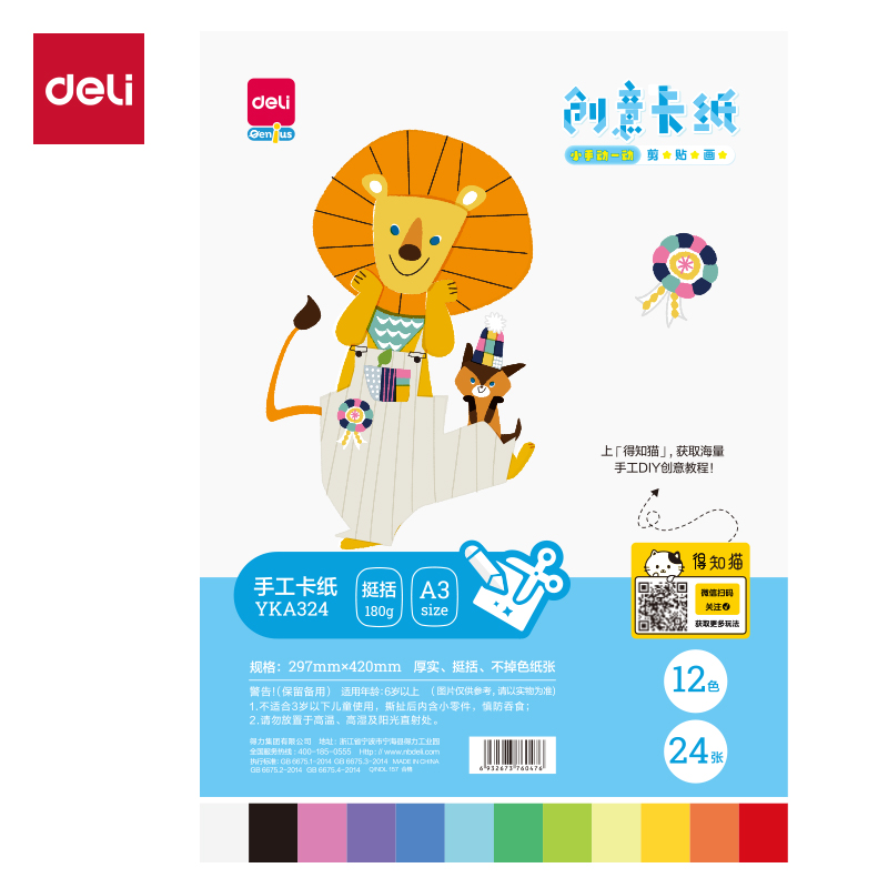 得力YKA424-A4/12色24张彩色手工卡纸(混)(90袋/箱)
